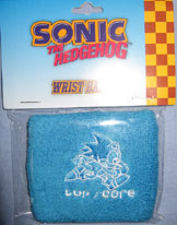 The blue wrist band is interesting, in that the embroidered running Sonic uses a blue that is VERY close to that of the background. This makes the design subtle. Underneath, it says "Top Score"