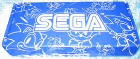 It held the little metal Sonic figure (cast metal, from Segaworld) along with 3 other small figures . The box has a nice white line-art Sonic theme with bold Sega logo. It is not known where it is from. This, and the following 4 photos from: Rhia.