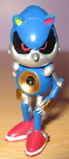 Of course, you need a closeup of the Metal Sonic figure! You can see it in the image gallary at the right (or bottom for mobile). It's a fairly good likeness, with no glaring problems...except the ears, which are both non-matching and inaccurate. Why is one green and the other red? It's very nonsensical and curious. Notice that they used actual gold-tone paint on the accents for a great touch. You never see it on Ebay, so it must be quite rare, as with all Metal Sonic things