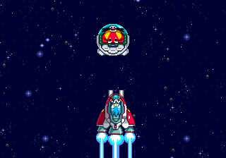 It's pretty wierd. There's grainy voice acting which mixes mostly-Japanese with random English words like 'speedo upp' and the use of the word 'hero'. The video helpfully provides translation for it all. It also reveals that the game is pretty short, apparently, if you are at least ok at it. You choose the ship's weapon, and Eggman dispenses abstract-shapes robots which turn into stars with smily faces on them when they get hit. If you can hit enough of these, he'll get out his boss robot which is a green horned 'oger looking' thing that tries to punch your ship.
