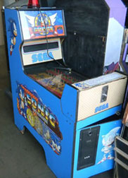 This isn't an arcade machine...but rather an ad for one. This is likely to be a full or part-page ad that would appear in a trade publication of some sort. (As in, a magazine that is not for public sale) It's here to advertise the odd machine seen on Arcade Page 2, back when it was new. The bottom text reads: "You don't ask for higher collections, you capture them". Meaning that the game has the ability to earn you more money when you add it to your arcade. Colorful enemy art from Sonic 1 and the more Japan style title/logo give this ad an interesting look. Discovered by SonicBoy 19.