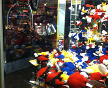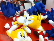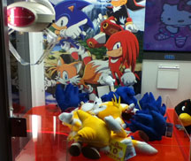 This machine appears to be called "Cromptons X Factor" and it is full of modern Sonic plushes. You can see Shadow, Tails, Knuckles & Sonic in various sizes all waiting to be won. (the other half of the machine appears to be Mario things) The second machine (seen below) is much smaller and only contained classic style Sonic & Tails plushes.