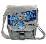 While the one in the gallary is a Messenger Bag, it can still be used for school. Once again the top folds over and clips but it's more square than rectangle. It has Sonic Adventure style Sonic in a new pose, skidding into a paint splash type effect. "Sonic" is written as the background in a more grunge-style font for a modernist look. This bag is also made by GE Entertainment, and is available at www.animewild.com and www.gkworld.com sold in 2009 It should be around $30.00 when you order it.