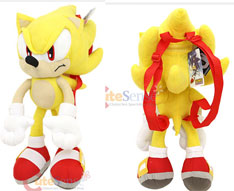 The plushes look pretty decent, except for poor Knuckles there. His eyes are too tall (he looks startled) as well as being off-center (look how they don't align with his nose-seam) His feet are too small & he suffers from "big body". The fists are nice & large though, which is good. Shadow looks decent, with well sized feet & usual frown. Super Sonic is pretty good too. The Tails is nice as well, & his strap is orange.