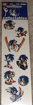 Stickers are a great way to decorate things with Sonic. Good on binders, notebooks and more...and also inexpensive to collect. Here are 2 sticker sheets from around the time of Sonic Adventure 1. The left set is Okee Dokee (known for stickers and tattoos) and features just about all the Sonic stock art they could get including 2 Skii Sonics (which are uncommon because he didnt ever actually skii in that game) Skateboard Sonic and DJ Sonic. The disk you can recognize from what ReSaurus used in their packaging.