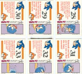 Of course...if you have some, sending in scans/photos is really recommended! These large scans are a courtesy for the zillions of fans who don't have the cards, and can't be expected to buy them, as there aren't any left. This set was aquired when a large Sonic collection was liquidated over a Newsgroup. *Do you remember what a newsgroup was? You can look it up.