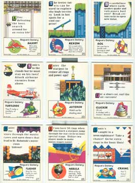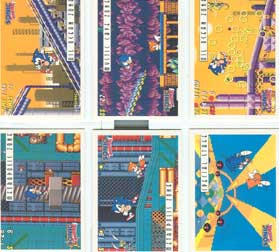 The second set of cards is somewhat less impressive. All they did was take screencaps of Sonic 1 and Sonic 2 for the Genisis, and add in really poor stock art. It is often mis-used, wrongly sized, misplaced or just inappropriate. The sprites would have looked better.