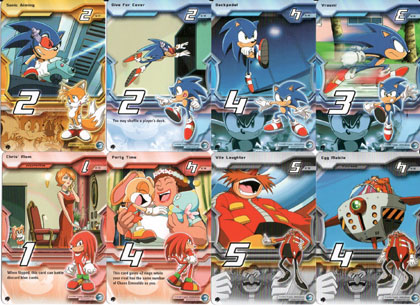 These modern Sonic X based cards are also a game. Natually, they use cels from the show for most of their pictures. The character icons in the corners though, seem to be various stock arts, as you can immidetly recognize Sonic's poses from MANY common t-shirts