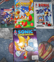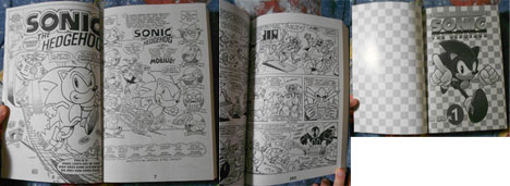 Here is the latest addition in summer 2012, to Archies' batch of compilation style books. It is Sonic Legacy Series Book 1. As you can see here, with the front & back cover, it's a thick compilation book, at a pretty large size. (See it to the right, next to the 'super special' , and regular comic issue. It has an all-new cover.