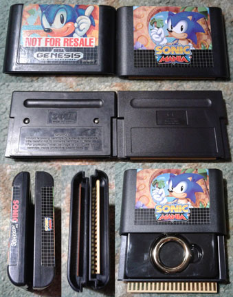 Here with these comparison photos, you can see that the cartridge is almost an exact duplicate of the old original Genesis one. It's slightly thicker, but it does open up to contain the hidden treasure ring. There is even real metal for the 'circuit card' part that serves as the handle to open the 'ring drawer', to make it extra authentic.