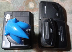 The sound-playing Genesis statue base is the size of the old orginal big Sega Genesis console. The one it's shown with in the photo above was the console's 2nd release which was smaller.