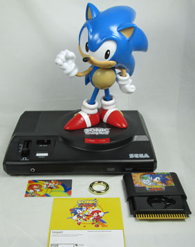 It has a BIG 3D plastic Sonic statue and life size Genesis console that plays the "SEGA" sound effect when you use the switch.