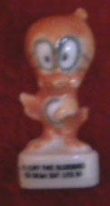 Here are two more feves, Tails & a Flicky bird. Tails isn't the best either, with red legs, no socks, and just shoes. He's also rather fat...but it's the super big nose face and small ears that make him almost unrecognizable. If it weren't for his 2 tails he could just be some generic animal figure. The Flicky bird is better off...but early flickies are generally depicted as being blue (with red accent beside the eye) however this one appears to be reddish or brownish all-over. (Getting a figure entirely the wrong color hadn't happened up till this one) but, at least the proportions here are a bit better.