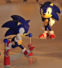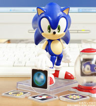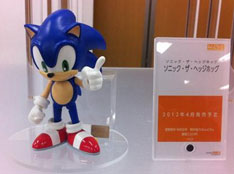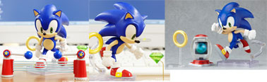 This is the Sonic figure that GoodSmile Co. 's Nendoroid line is planning to make. Nendoroid figures are usually 'chibi' (short, stubby) versions of characters. However, since Sonic never started out with human proportions, he's sort of hard to make 'chibi' --as you can see here. It just looks like a cross between classic & modern styled Sonics, or a shorter version of modern Sonic.