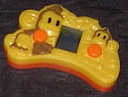 Gamers are challenged to move Sonic The Hedgehog back and forth around the racetrack without running into anything." Here is a racing game of some sort. Too bad the case is so dark blue, you can't tell what the reliefs are.