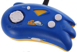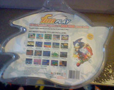 This is the "Fun Play" 'game system' by FreeTron. It's another of those all-in-1 controllers, where the controller is the game system. It plugs directly into a TV or portable screen via the cord. It plays 20 classic games, with a focus on Sonic. Notice that the controller is also shaped like another of those strange vaguely Sonic like heads.