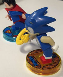 Lego Dimensions is a video game (not usually covered by Gear) but it has toys that go with it & are able to interact much like Amiibos with their special bases. To get the character in the game, you can buy the figure, as seen here. Sonic comes with his ring. You can also get the "Level Pack" seen at left that has not only the Sonic figure but his little car from Sega Sonic All Stars Racing as well as a little version of the Tornado plane so you can use these vehicles in the game too. Collectible AND playable is a fun combination!