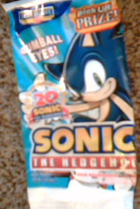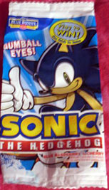 So many wrappers...so many brain freezes? Here is what must be the 4th different wrapper they used on that same ice cream bar you can see above. This one appears in 2009, and while it uses Sonic X art, it is not SonicX logo branded or oriented as the other one was. This one is more just representative of 'modern Sonic'. Notice it still has the contest tag (circle at top) and now boldly announces "Gumball Eyes!" Which, sounds quite absurd when taken out of context.