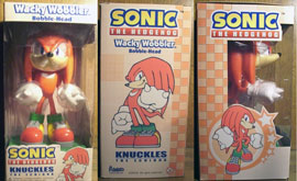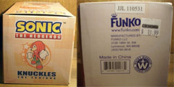 Next, Funko made Wacky Wobbler bobble head Knuckles. He too is modern style, (according to the box art) though it's hard to tell on the figures' eyes. He is just standing in a 'ready' pose without any gestureing. This figure looks fairly on-model as well, with nice 3D details for the shoes and no exaggerated head size. Should be able to order from FuntasticStore.