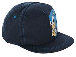 In the gallary is another cap from asda which is rather plain. It's a black baseball type cap, with blue stitching as the only accent. The front has a fairly large all-embroidered classic Sonic (arms crossed) pose that cuts off at about the hips. This is in hat sizes 4 thru 12, and should be about 4 pounds. It's a 2013 item, & decent if you need a hat that's not too busy.