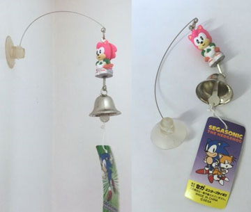 The Sonic one is different from the others because his bell is next to him, rather than at the feet. Did it break off? Tails is looking a little poorly with very tall eyes that are also a little bit cross-eyed. Amy's paint isn't the best, but the did get all of her detail including the shoe laces. This funny mini style where they don't really have legs wasn't used at all in later items and isn't super common on vintage things like this. This is a cute selection of little bells. (But, was there an Eggman one?)