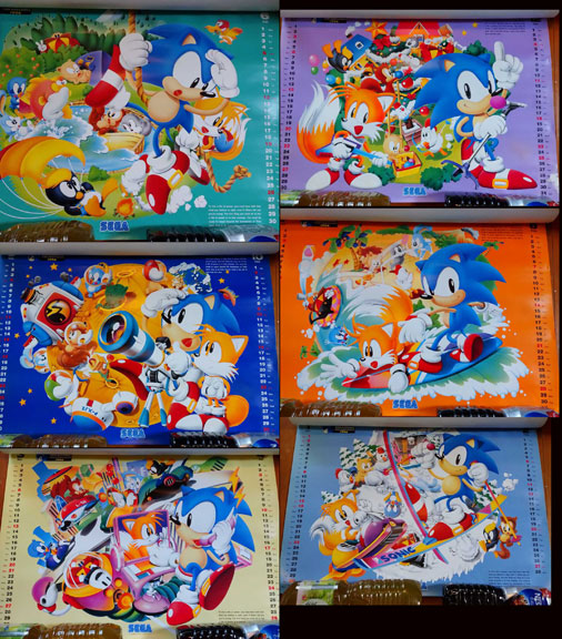 In the gallary are all the pages of the calendar. It uses the famous "Sonic Screen Saver" art that was all done by 1 artist who has this particular style. There's way more art than this, they just chose a select few pieces for the calendar, then applied them to various colored backgrounds to make the pages.