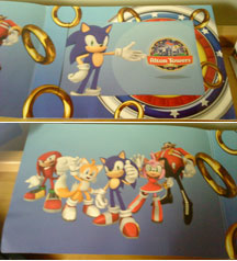 A photo frame is home decor...even if it is only made of cardstock. This cool frame can only be bought at Alton Towers hotel, after riding on the Sonic Spinball themed rollercoaster. Like many coasters, this one will take a photo of the riders which you can buy & frame to remember your experience with. The frame is card, with great Sonic graphics on the front & back. There's a slot for your photo when you open it (area where Sonic's hand & logo are) and the other side has nice CG character art. Photo & owned by SonicSpeeder1