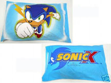 Sonic X pillow cases mean Sonic theme beds can once again be made! It's great to see that in 2007, they are making more Sonic household goods. There are 2 different types, one with the 'jump punch' Sonic X stock art that someone has added a random lightening bolt to, and an 'away' facing one.