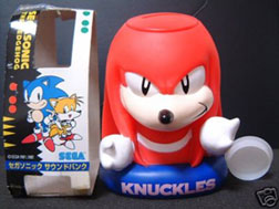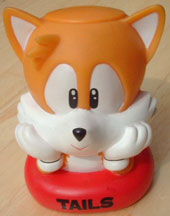 A selection of 4 plastic torso shaped coin-banks. You can get the money out with a plug at the bottom. The Tails bank looks like it is contemplating the proposition of quarters being dropped into his head, as the close-up shows. The Eggman bank is the rare-est of this particular set.