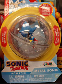 Jakks Pacific keeps adding classic characters to these odd plastic spheres, so, Metal Sonic must have been next on their list as he is now at Books a Million stores too. Notice the word there below the logo "Booster". But why? What do these boost? They all have the word there. The figure looks ok, but the spheres make them hard to photograph properly in any light, and the BAM pricing makes them difficult to buy at nearly 10 dollars for a tiny item in a clear globe.