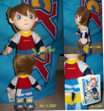 You've already seen a zillion Sonics and Tails dolls, but what about the Chris? This photo collage shows him from all angles, and gives you a look at the official tag. You can see here that his face is embroidered on, and the bottoms of his shoes are actually shiny. His hair is fuzzy, but sculpted to be pretty close to as seen in the show, though his head is a bit flat. The detail on the clothing, and the look of the embroidery contribute to make this a decent "Chibi Version" of Chris Thorndyke.