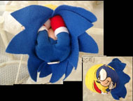 What is this curious item? It is a folding ball/reversable plush! This clever item is a Sonic plush when right-side out...but fold him up into his own head (!) and it becomes a play ball. This has Sonic's body drawn on it, so this plush can really do a "Super Sonic Spin Attack"! This clever thing is rare and interesting!