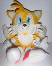 The Tails doll is likely from the same set as the Amy you see above. Notice that his eyes are embroidered, his bangs are a felt strip, and he is made out of a very similar fuzzy fabric.