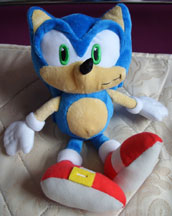 The 'nice quality' streak of the earlier smaller plushes stops with this Sonic. The doll to the left is 'small' the doll to the right is 'medium'...though they're from the same set/run, as you see the embroidery on the eyes and the fabric is all alike.