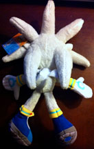 Silver's look is hard to determine due to the photo being super small. That center shot is actually of a display, what they're hoping it will look like in stores. box (for stores) of their mini-plushes that somehow got to France! Jazwares had a habit of releasing any plush to the USA first, but that box made its way there ahead of all TRU stores. The last photo proves they're planning on adding Tails...and he doesn't look too bad. Silver's shoe-bottom is also detailed, and so are his gloves. Hopefully they can learn to improve all their dolls in the future.
