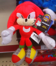 For some reason, the Classic Knuckles Plush seen here wasn't released with the classic Sonic & Tails small dolls. (They dispense in stores from a cardboard 'box' holder) He started appearing around 2012, instead of late 2011, like the rest. As you can see, in practice, the Knuckles doesn't look quite as good as his Jazwares Pro Photo above. The head makes one of the eyes tilt, and one/both of his fists are a little small/flat. He's not terrible, but he's not really spot-on either.