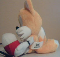 Small size classic style Tails looks decent, with all-right expression and good detail. His sock belt even has a buckle (picture of buckle on fabric, seen in left shot below) The 'tush tag' for all these also has the 20th logo on it (seen here) If you're going to be getting small JW plushes, these are decent ones to go with.