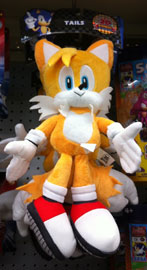 It seems that given some revision & the larger sizing, they're able to make the characters more on-model. The details look good, with shoe-soles, buckles, and the little bits of fur at the edge of Tails' chest. They are $14.99 each at Toys R Us & come on a cardboard hang-tag that's pierced through their ears. Because of this odd choice, always inspect the ears for rips or pulls before you buy.