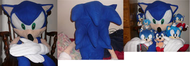 You've seen various Kelly Toy plushes around these pages before, but you havn't seen the 54 inch one! This one is super big, but it is not their largest, which is a 72 inch. (Sonic, Tails, Amy, Knuckles & Shadow seem to have been made at each size level) As with most of their dolls, he looks ok, if slightly/somewhat under-stuffed. The feet & hands are appropriately big/don't seem shrivelled like on some dolls. His ears are a tad low on the head, and for some reason the brow ridge is a cloth 'flap' type thing with this one. The eyes are properly placed, and so is the mouth though, so the expression remains decent. This was a win-able item at Six Flags theme parks in the USA.
