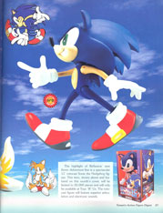 Tomart is a magazine for figures, action figures & model collectors. When ReSaurus announced their Sonic Adventure figure line they devoted two whole pages to it. The first talks about their small line, and how the figures will come with bases, rings & ring holders, and the second showcases the "Giant Talkin' Sonic" who is a "Rotocast". They didn't catch that the 'talkin' part was in the base, not the figure, though. Also, they reveal he was limited to 20,000 units.