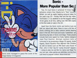 Misleading article title time! Yes, it does say "Sonic - More Popular Than Sex" (smudge is a print error on the item) but what it means is...that Sonic 2 out-sold Madonna's (contraversial at the time) SexBook in Britain. It goes on to mention STC, Sonic clothing, one of the cartoons, & music. It says that several celebrities at the time are getting into video games such as Ice Cube (rapper), Michael Jackson, Andre Agassi (tennis), Jean Paul Gautlier (fashion, oddly enough) & House of Pain (Which, HOP did mention Sega in their 1 hit "Jump Around") Because this was the era where people were confused that video games weren't just a tiny fad to last a year or so as kiddy toys and then vanish. The picture here is the cover of a different magazine "I-D" which didn't normally cover games.