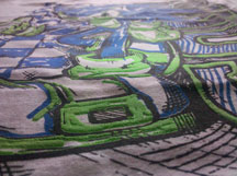This shirt has a scribbly & scratchy style to the design. It features modern thumbs-up Sonic, checkers, and a vertical font for his name. The paint/ink for this shirt though, is special. The green ink is more like 'puffy paint' and it has texture. With the close up angle shot (right) you can see how the shirt is textured. It stands out from your usual shirts with its' textured & bright design. This was found at Shopko, in the boys' section.