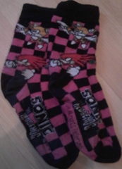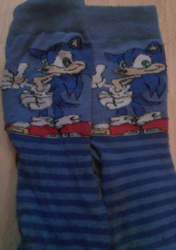 More pairs of Sonic socks! The first pair is interesting, as it has Sonic on one sock, & Shadow on the other, depending on the side...so they pair up to complete the look. The middle is modern Sonic...but he looks off model! What's going on here? The last pair is interesting, as it uses only Tails & Knuckles (classic style) with the logo. All found at New Look.