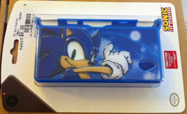 Protect your DS (Lite only) with this plastic snap-on case. This case is not only stylish, with a great close up of some dynamic stock Sonic, it's also got slight relief design going. The details of Sonic are slightly raised for added interest. With the left photo you can see the plastic has pearly/metallic glitter dust in it & also just how raised the design is.
