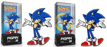 You can see the the factory/company photos for the Sonic Figpin in the gallary. They did 2 versions of him, but the glitter one wasn't talked about first, so it's a bit of a surprise. The glitter one is certain to be a Target exclusive, and the regular one may or may not be. But, Target online and in-store is your place to go for them as they're at least assured to have it (So long as it doesn't run out)