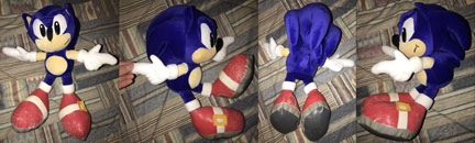 News Power created a pattern based on those 'big shoe' Sonic dolls that had really massive but fat feet. They tried this right at/before Sonic Adventure, and tried to brand him as such, even though that would have required green eyes. (notice he is a darker blue like SA, not lighter like classic)