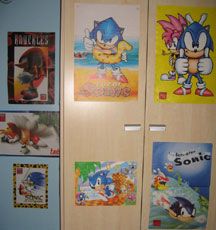 The last photo is a collection of yet more posters that came with STC. (they really gave away a lot of stuff!) It ranges from the usual STC style Triangle-head Sonic to interestingly shaded Knuckles and semi-rendered Tails. The swimming Sonic one says "Underwater Sonic".