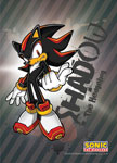 These wallscrolls for Sonic and Shadow have a similar stripe-theme background, with color to match them. Sonic's uses a gringe style font with paint spatter effect in the background. His pose is similar to, but not the same as a SA1 ear pose, though it looks more coordinated. Both scrolls by GE Entertainment in 2009.
