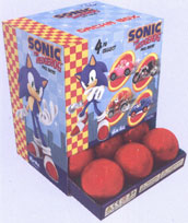 Here are 3 different Gacha style Sonic products. From the left you can see Disk Launchers 6, Assemble Figures 6, & Pull n' Go Racers 4. They come in towers which dispense opaque balls. As is the gacha style, you can't see what's inside till you open it/until you buy it. It's a type of 'blind boxing' used when coin-dispensing machines can't be used. Will this be the final look for the products on retail shelves? Where will they be sold first? This seems like a cool product line.