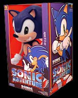 Even ReSaurus had prototype figures. These early shots of their Knuckles and Giant Talking Sonic figure show different paint jobs, which, fortunately for everyone were fixed before release. Knuckles has awful near-sideways goat eyes (What IS IT WITH THAT? Similar awful mistakes keep getting made down through the years with ToyIsland Super Posers being the latest example) The Sonic has his eye down in his...lower face part-way as well as being somewhat tilted which also makes him look bad. You can see how these really turned out on the regular ReSaurus figure pages. These photos will remain here forever as the figures were never produced this way, and the company is out of business.